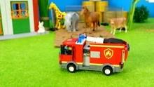 视频一开始,一辆红色的消防车缓缓驶入画面,孩子们看到这一幕,立刻兴奋地欢呼起来。他们的眼睛里闪烁着好奇和兴奋的光芒,仿佛在说:“哇,消防车来啦!”